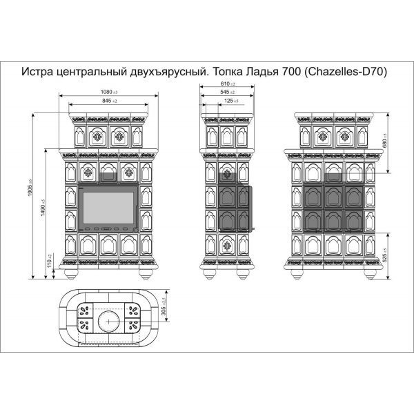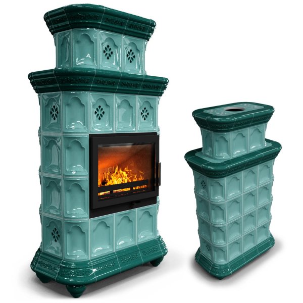 Изразцовый камин Истра центральный двухъярусный Волна украсит любой интерьер.