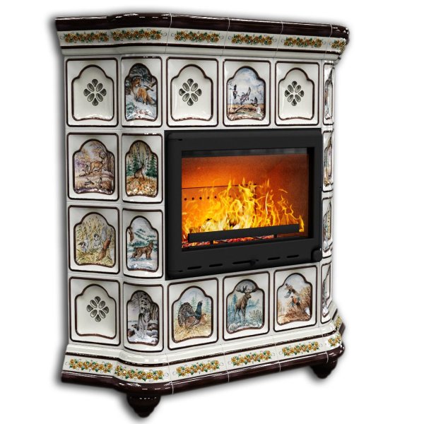 Печь для дома на дровах Истра угловой Звери украсит любой интерьер.