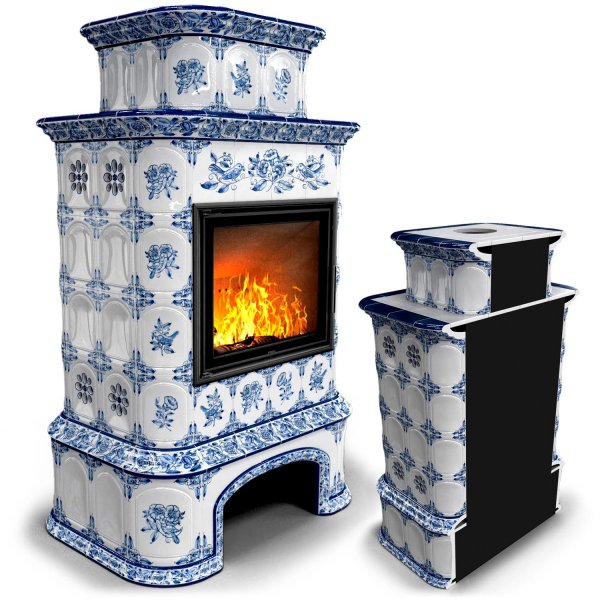 Изразцовая печь для дома Прованс с дровником пристенный двухъярусный Дельфт