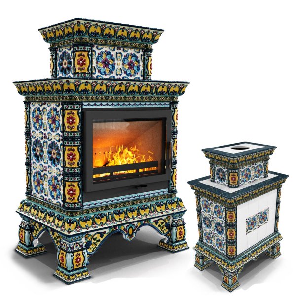 Изразцовая печь на дровах Кострома центральный двухъярусный Март — камин в русском стиле производства КимрПечь (г.Кимры).
