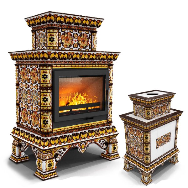 Изразцовая печь на дровах Кострома центральный двухъярусный Октябрь — камин в русском стиле производства КимрПечь (г.Кимры).