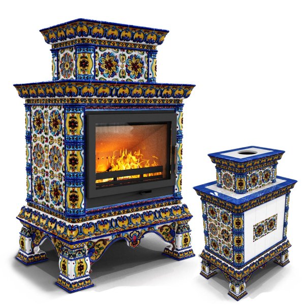 Изразцовая печь на дровах Кострома центральный двухъярусный Январь — камин в русском стиле производства КимрПечь (г.Кимры).