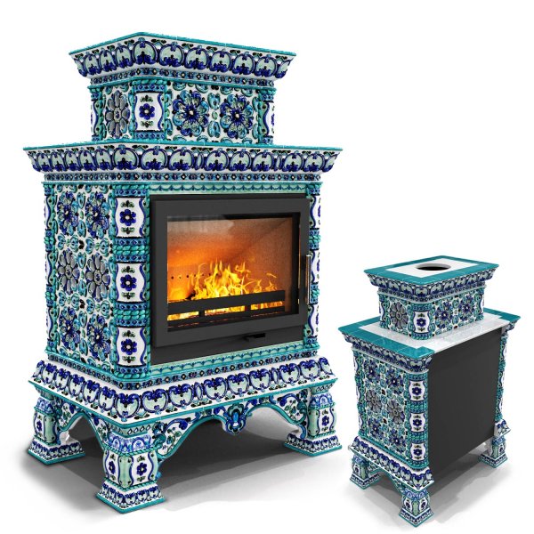 Изразцовая печь на дровах Кострома пристенный двухъярусный Февраль — камин в русском стиле производства КимрПечь (г.Кимры).