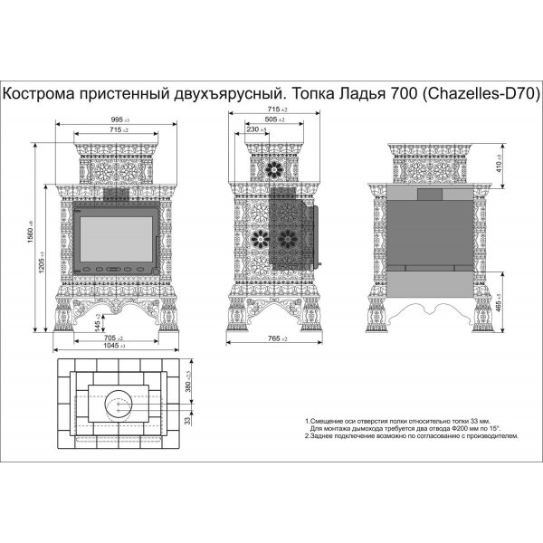 Изразцовая печь Кострома пристенный двухъярусный Февраль