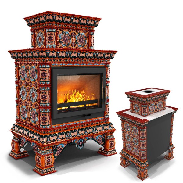 Изразцовая печь на дровах Кострома пристенный двухъярусный Сентябрь — камин в русском стиле производства КимрПечь (г.Кимры).