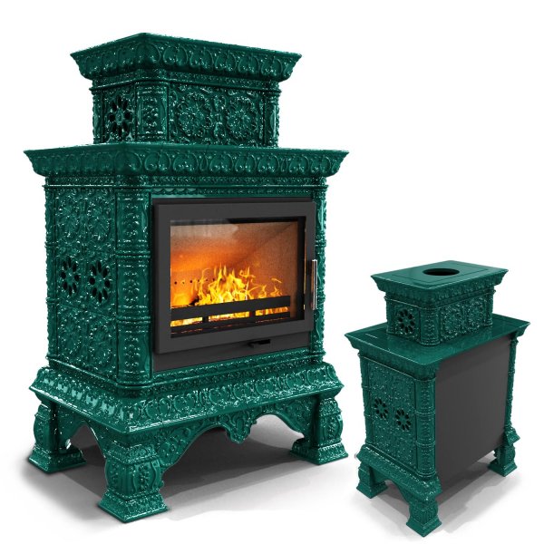 Изразцовая печь на дровах Кострома пристенный двухъярусный Волна — камин в русском стиле производства КимрПечь (г.Кимры).