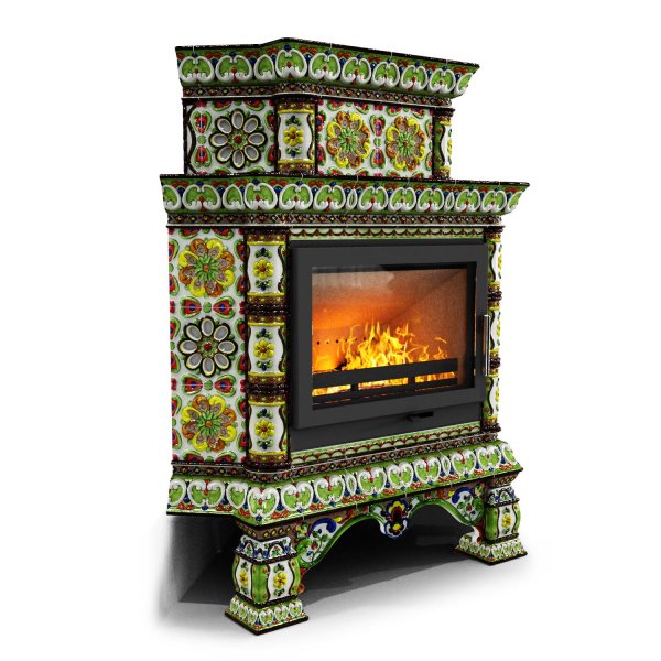 Изразцовая печь на дровах Кострома угловой двухъярусный Июнь — камин в русском стиле производства КимрПечь (г.Кимры).