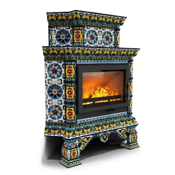 Изразцовая печь на дровах Кострома угловой двухъярусный Март — камин в русском стиле производства КимрПечь (г.Кимры).
