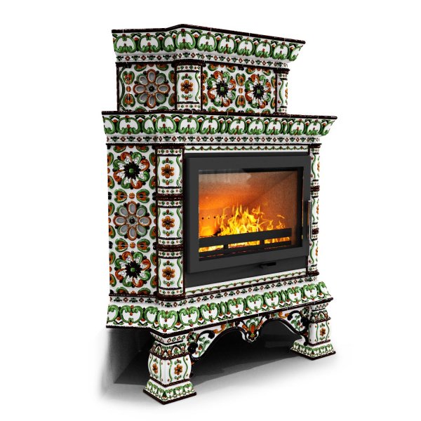 Изразцовая печь на дровах Кострома угловой двухъярусный Ноябрь — камин в русском стиле производства КимрПечь (г.Кимры).