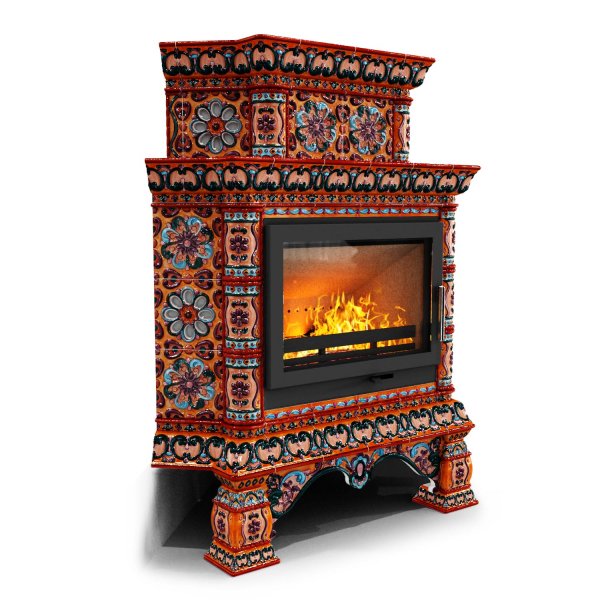 Изразцовая печь на дровах Кострома угловой двухъярусный Сентябрь — камин в русском стиле производства КимрПечь (г.Кимры).