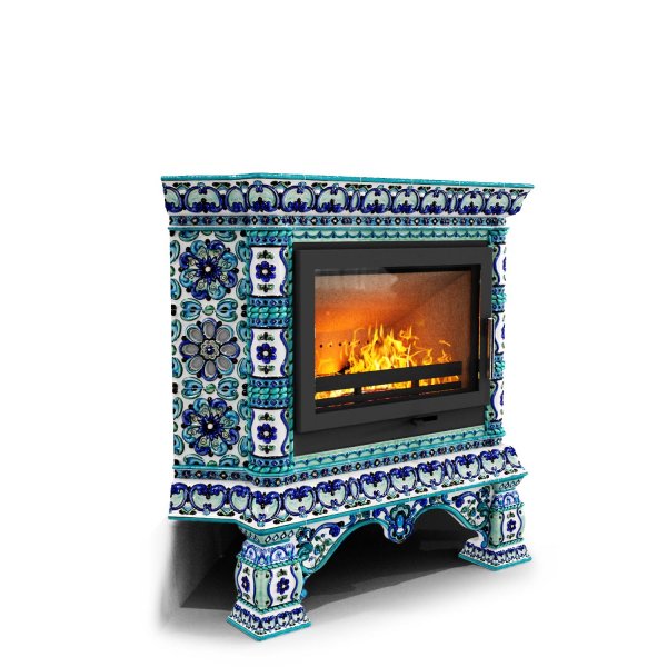Изразцовая печь на дровах Кострома угловой Февраль — камин в русском стиле производства КимрПечь (г.Кимры).