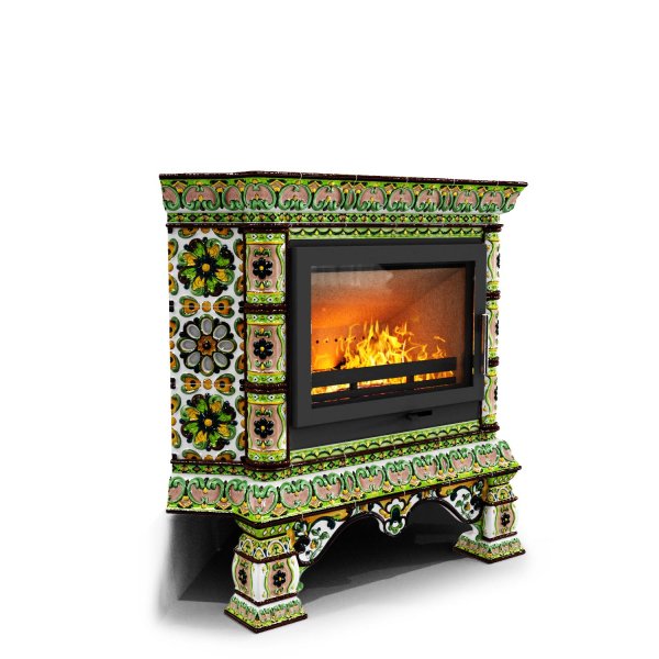 Изразцовая печь на дровах Кострома угловой Июль — камин в русском стиле производства КимрПечь (г.Кимры).
