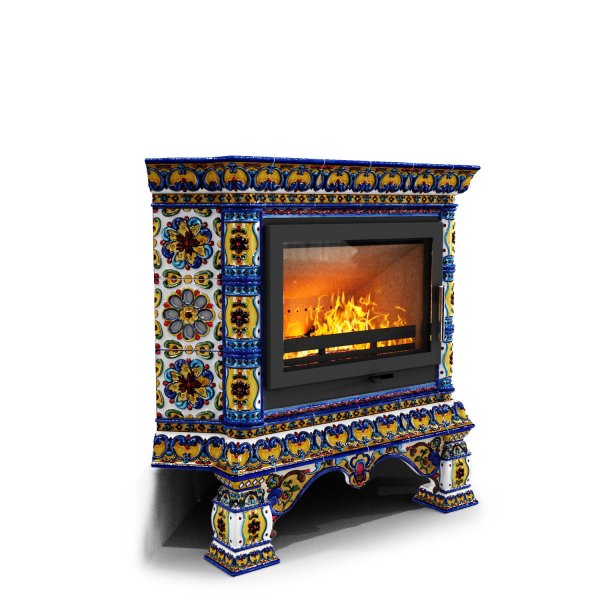 Изразцовая печь на дровах Кострома угловой Январь — камин в русском стиле производства КимрПечь (г.Кимры).