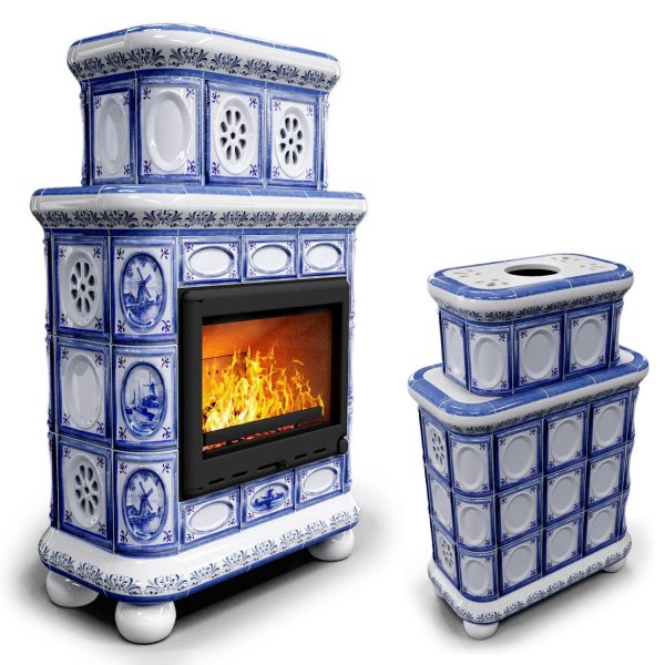 Изразцовый камин Медальон центральный двухъярусный Голландия — камин в европейском стиле производства КимрПечь (г.Кимры).