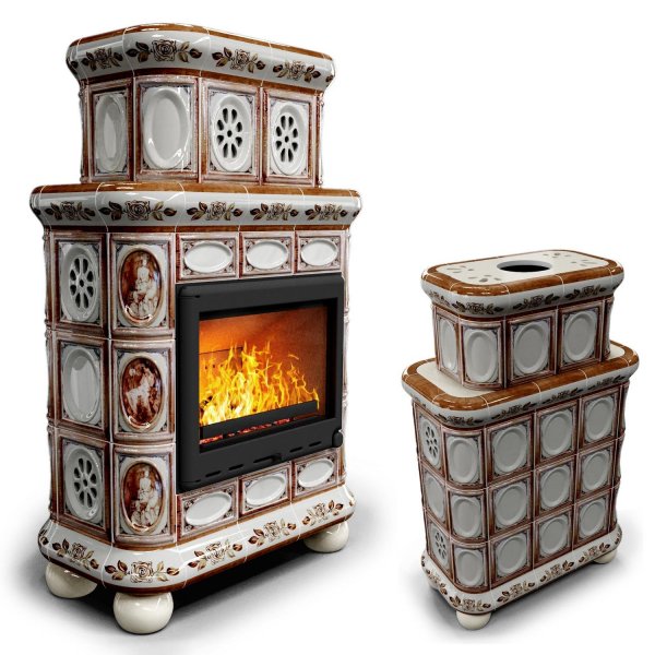Изразцовый камин Медальон центральный двухъярусный Модерн — камин в европейском стиле производства КимрПечь (г.Кимры).