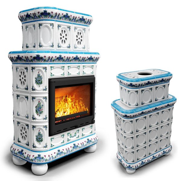 Изразцовый камин Медальон центральный двухъярусный Незабудки — камин в европейском стиле производства КимрПечь (г.Кимры).
