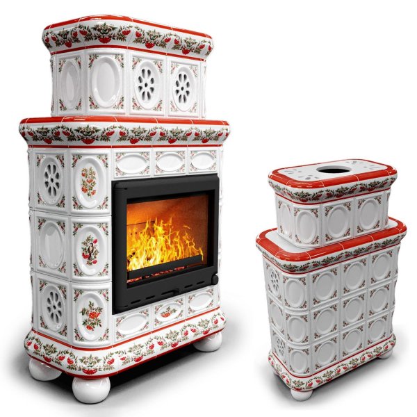 Изразцовый камин Медальон центральный двухъярусный Рябина — камин в европейском стиле производства КимрПечь (г.Кимры).