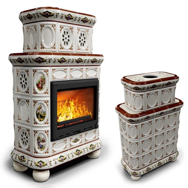 Изразцовый камин Медальон центральный двухъярусный Усадьба — камин в европейском стиле производства КимрПечь (г.Кимры).