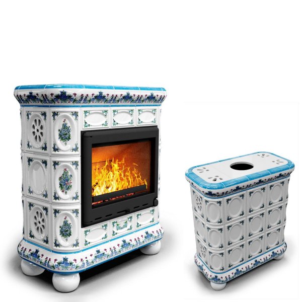 Изразцовый камин Медальон центральный Незабудки — камин в европейском стиле производства КимрПечь (г.Кимры).