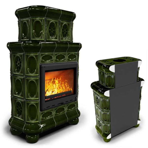 Изразцовый камин Медальон пристенный двухъярусный Хвоя — камин в европейском стиле производства КимрПечь (г.Кимры).