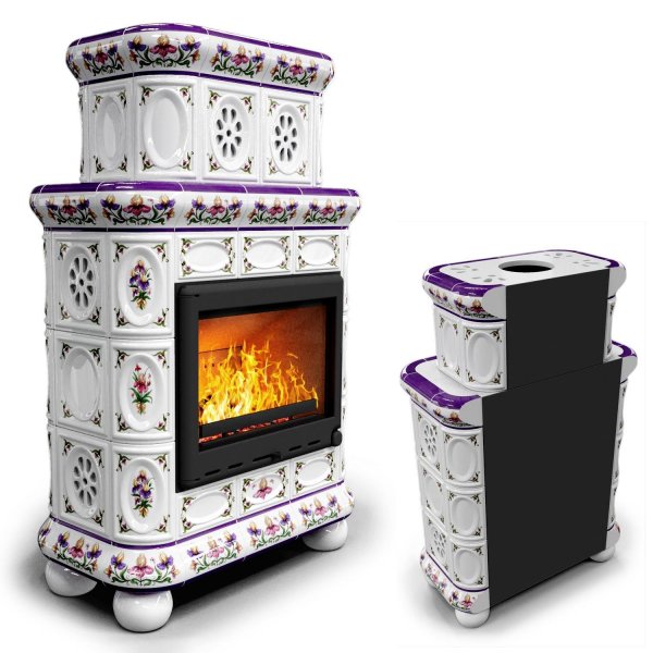 Изразцовый камин Медальон пристенный двухъярусный Ирисы — камин в европейском стиле производства КимрПечь (г.Кимры).