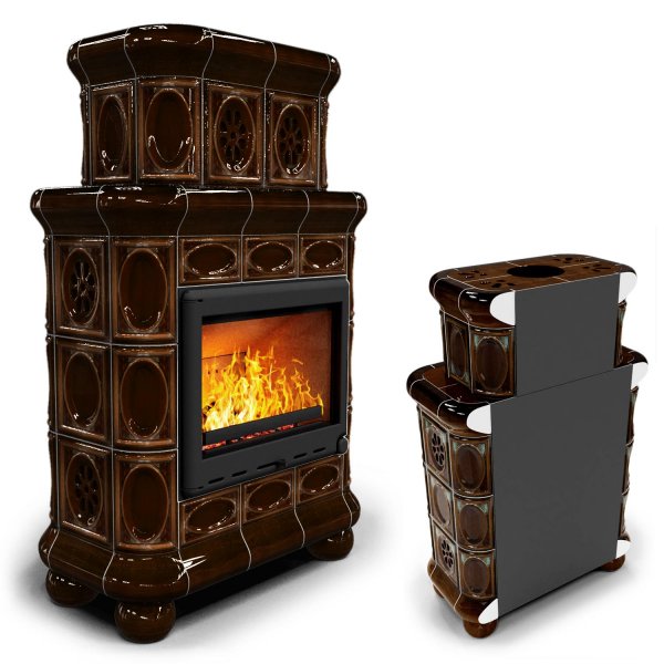 Изразцовый камин Медальон пристенный двухъярусный Каштан — камин в европейском стиле производства КимрПечь (г.Кимры).