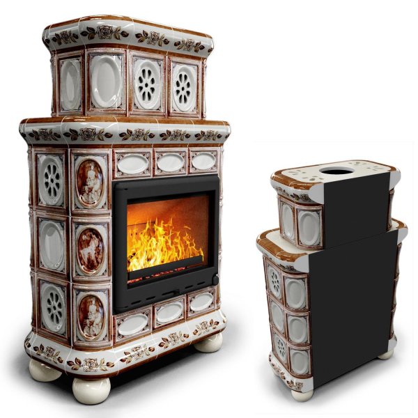 Изразцовый камин Медальон пристенный двухъярусный Модерн — камин в европейском стиле производства КимрПечь (г.Кимры).
