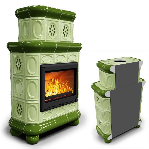 Изразцовый камин Медальон пристенный двухъярусный Олива — камин в европейском стиле производства КимрПечь (г.Кимры).