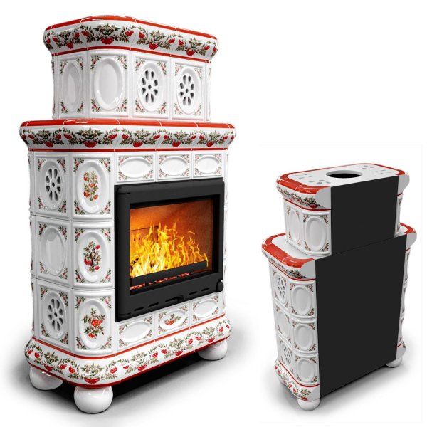 Изразцовый камин Медальон пристенный двухъярусный Рябина — камин в европейском стиле производства КимрПечь (г.Кимры).