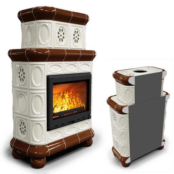 Изразцовый камин Медальон пристенный двухъярусный Шоколад — камин в европейском стиле производства КимрПечь (г.Кимры).