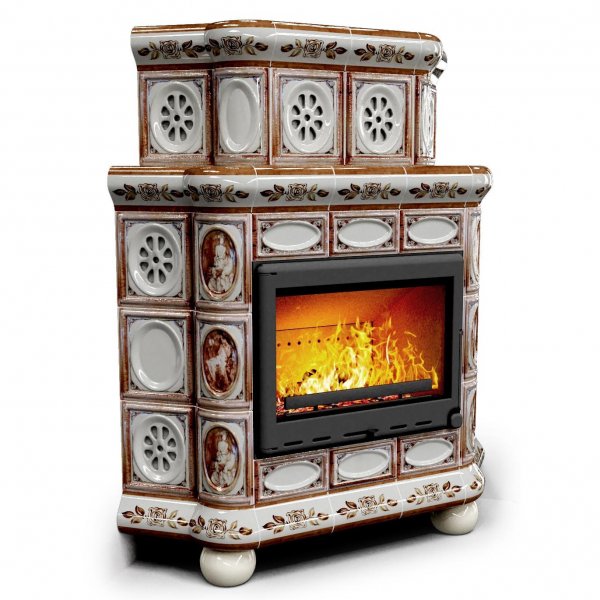 Изразцовый камин Медальон угловой двухъярусный Модерн — камин в европейском стиле производства КимрПечь (г.Кимры).