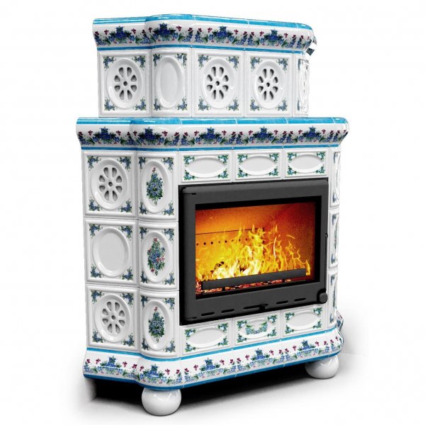 Изразцовый камин Медальон угловой двухъярусный Незабудки — камин в европейском стиле производства КимрПечь (г.Кимры).