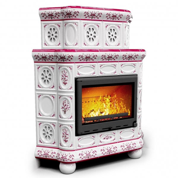 Изразцовый камин Медальон угловой двухъярусный Сакура — камин в европейском стиле производства КимрПечь (г.Кимры).