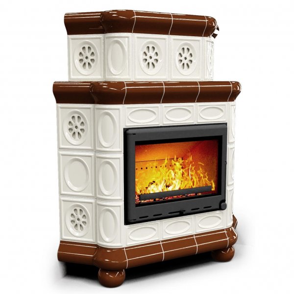 Изразцовый камин Медальон угловой двухъярусный Шоколад — камин в европейском стиле производства КимрПечь (г.Кимры).
