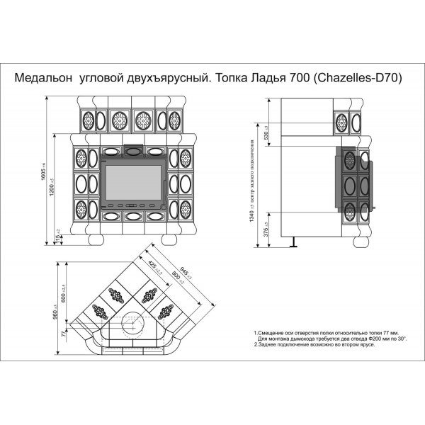 Изразцовый камин Медальон угловой двухъярусный Шоколад