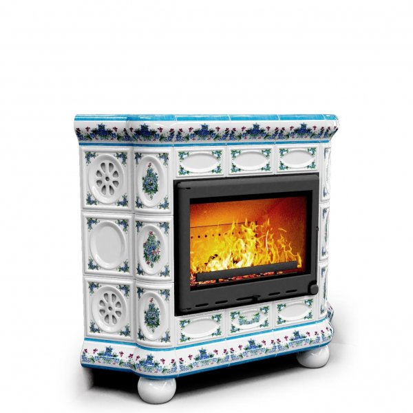 Изразцовый камин Медальон угловой Незабудки — камин в европейском стиле производства КимрПечь (г.Кимры).