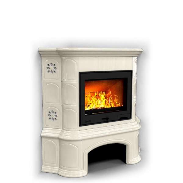 Изразцовый камин Прованс с дровником угловой Ваниль проверенный временем конвекционный камин производства КимрПечь (г.Кимры).