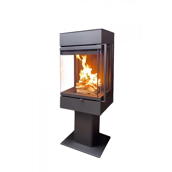 Инновационный камин с панорамным обзором огня, высоким стеклом и чугунной футеровкой.