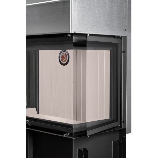 - Топочная камера футерована современным материалом, литьевым шамотом бежевого или черного цвета (по желанию покупателя) и надежно защищает металлические детали корпуса топки от перегрева.
