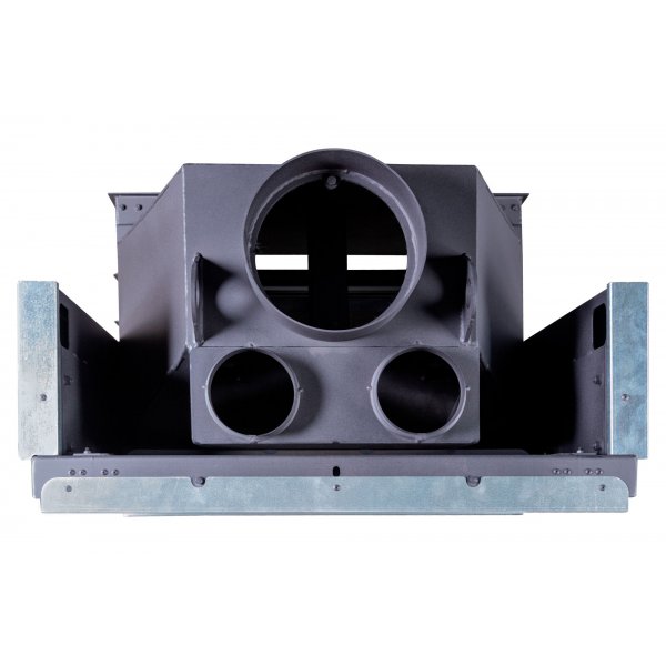 Система тепловой разводки имеет два встроенных патрубка диаметром 125 мм для подключения системы распределения теплого воздуха в смежные помещения и позволяет увеличить площадь обогреваемых помещений. Система забора воздуха извне, имеет два встроенных патрубка диаметром 125 мм для подключения забора воздуха на горение из соседнего помещения, улицы, подвала, и повышает надежность работы топки. Система очистки стекла эффективно очищает жаропрочное стекло и позволяет любоваться красотой огня. Система вторичного дожига увеличивает КПД топки и позволяет экономить дрова. Встроенная шиберная заслонка позволяет увеличивать/уменьшать сечение дымового канала и регулирует мощность топки.