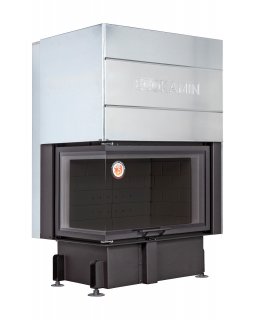 Каминная топка для угловых каминов с цельным угловым стеклом.Дверца топки открывается вверх, а так ж..
