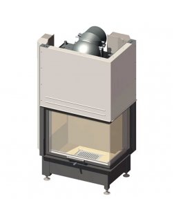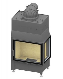 Угловая каминная топка с встроенным водным контуром Дверца топки открывается вверх, а так же в сторо..
