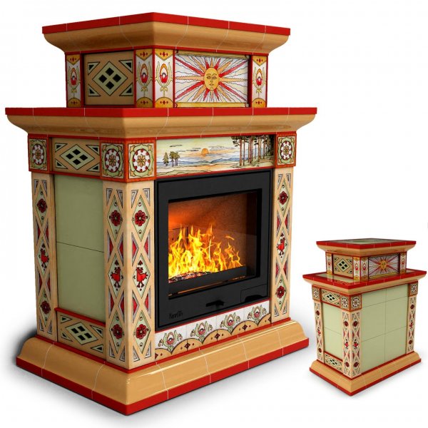 Керамическая печь для обогрева дома Билибин центральный двухъярусный Лето — печь в стиле «русский модерн» производства КимрПечь (г.Кимры).