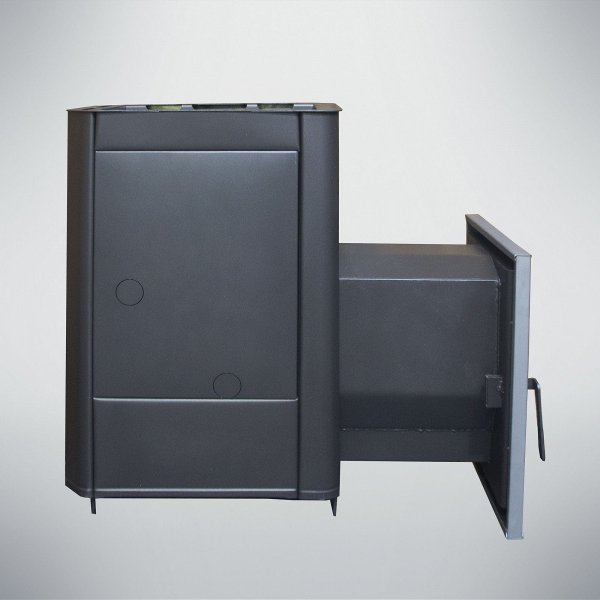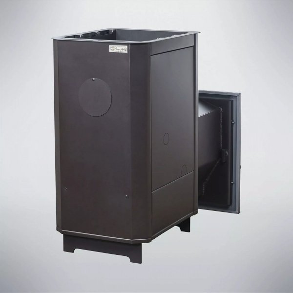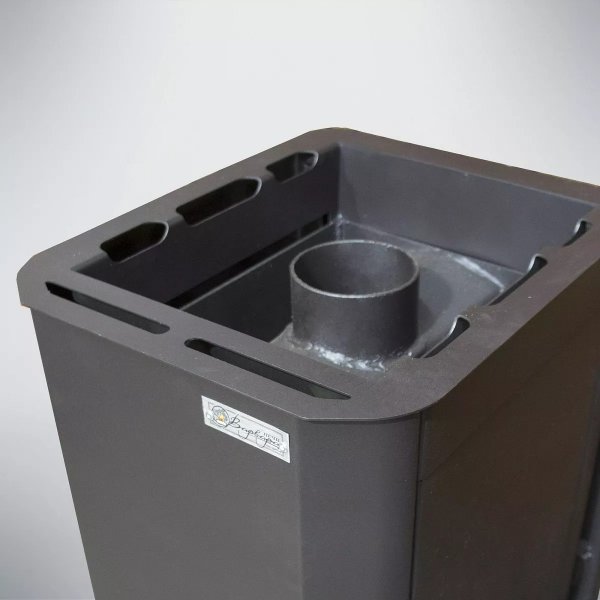 Прочная конструкция из толстостенной стали гарантирует многолетнюю эксплуатацию, а удобство обслуживания достигается за счёт специальных отверстий для чистки. Печь экономична, компактна и адаптируется под разные планировки бань объёмом от 6 до 40 куб. м. Высокий КПД минимизирует расход дров, а возможность загрузки поленьев длиной до 67 см (в модели с удлинённой топкой) сокращает частоту подкладок.