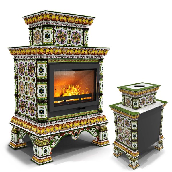 Изразцовая печь на дровах Кострома пристенный двухъярусный Август — камин в русском стиле производства КимрПечь (г.Кимры).