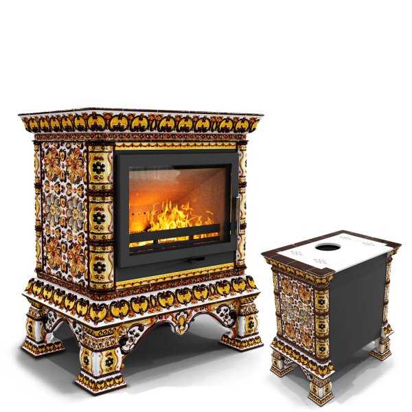 Изразцовая печь на дровах Кострома пристенный Октябрь — камин в русском стиле производства КимрПечь (г.Кимры).