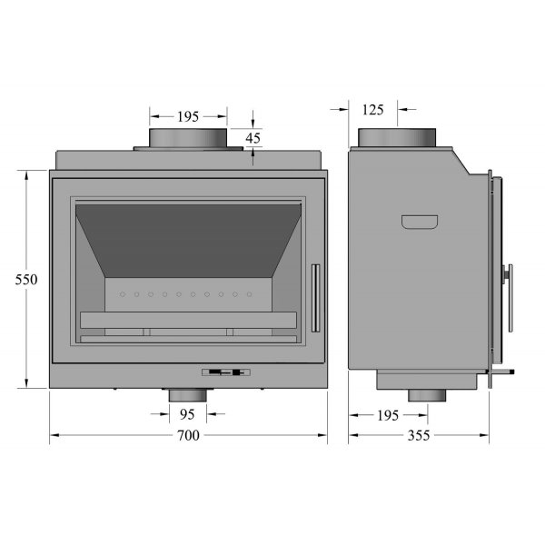 Каминная топка Ладья-700-25 является тепловым прибором конвекционного типа с медленным горением и вторичным дожигом пиролизных газов. Это полностью герметичная и безопасная топка. Футеровка выполнена из вермикулита. Удобные регуляторы подачи воздуха и заслонки шибера на лицевой панели топки. Температура ручек позволяет регулировать поток воздуха во время работы без средств индивидуальной защиты. В топке Ладья-700-25 применена система «чистое стекло»