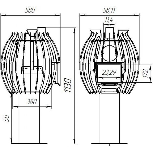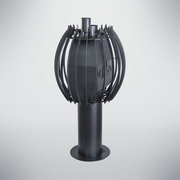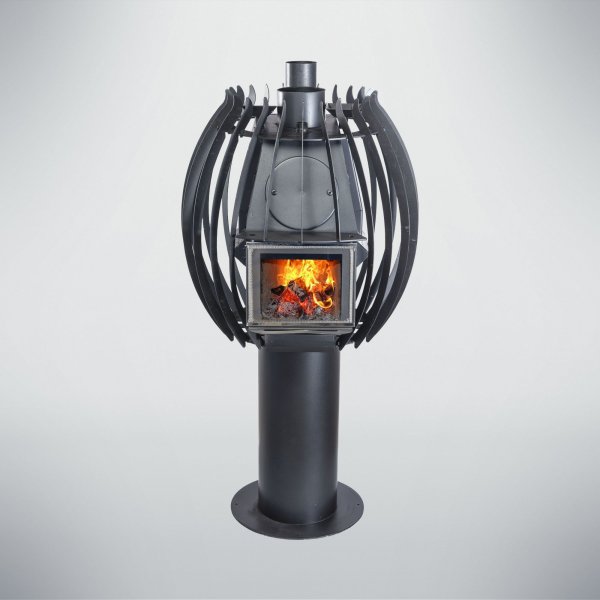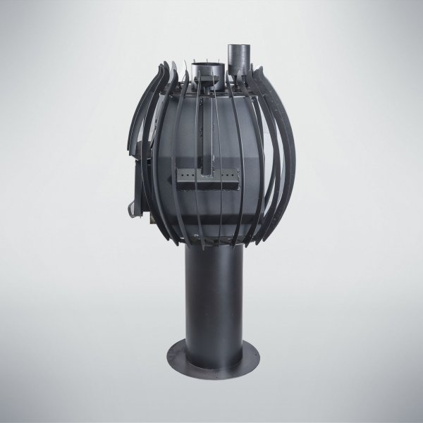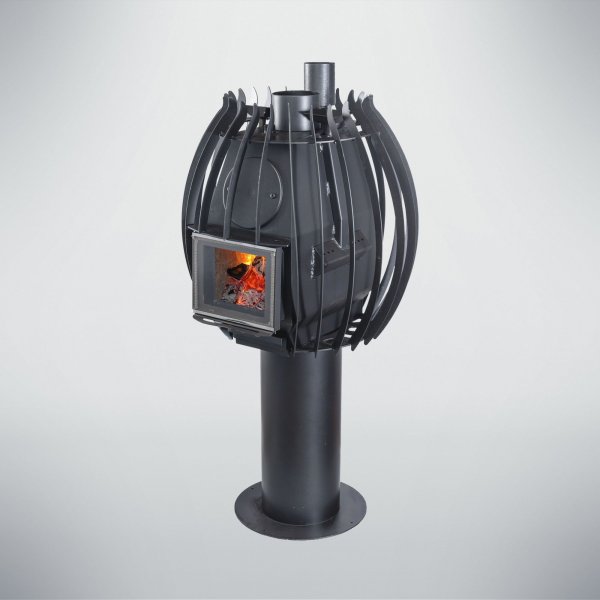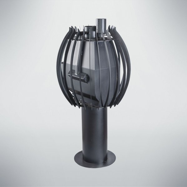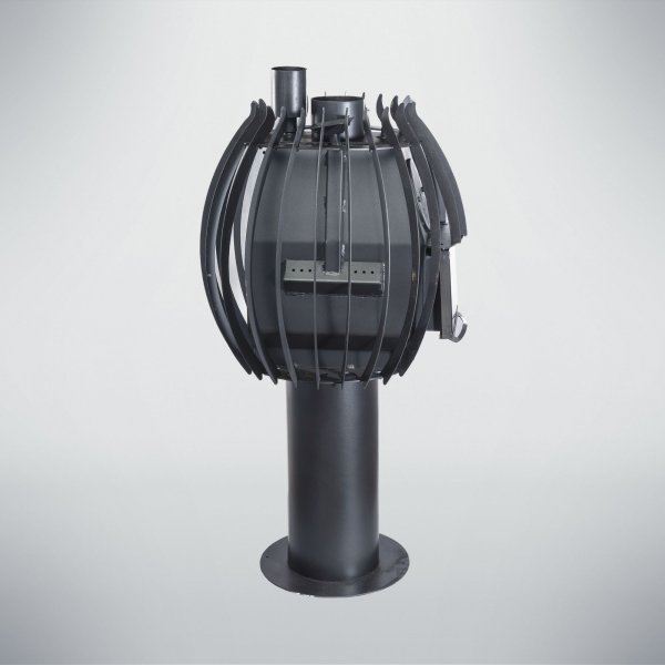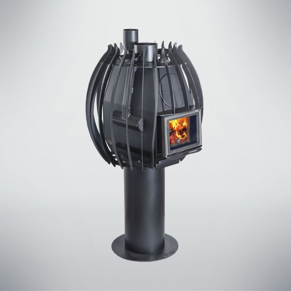 Печь для бани с самым необычным дизайном. В конструкции печи предусмотрена закрытая каменка, которая способна создать достаточного количество мелкодисперсного пара. На боковые стенки печи установлены емкости для парогенерации.