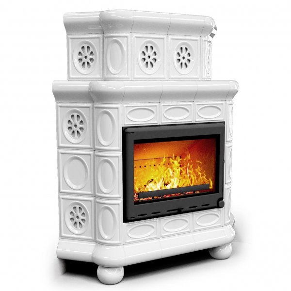 Отопительная печь на дровах Медальон угловой двухъярусный Белый — камин в европейском стиле производства КимрПечь (г.Кимры).
