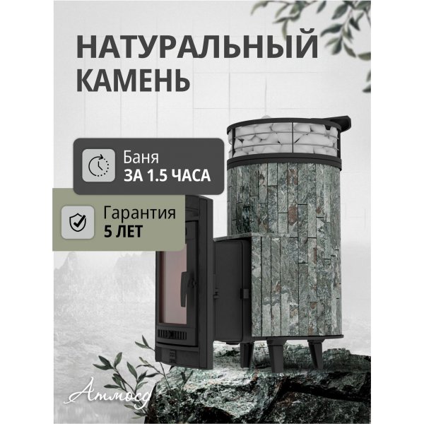 Практичная и компактная модель. Ламели из змеевика по периметру внешней каменки не только обладают хорошими теплонакопительными свойствами, но и придают печи оригинальный внешний видРежимы - русская баня, сауна, хаммамОбъем парной: